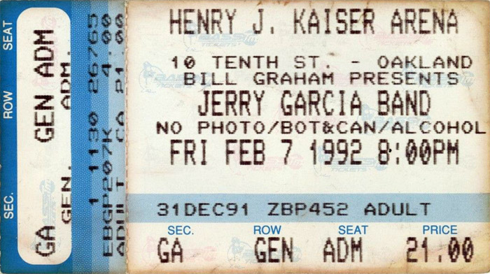 JERRY GARCIA BAND 2-7-1992 HENERY J KAISER AUDITORIUM OAKLAND CA