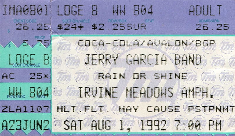 Sue: Band guarantee $100,000. Capacity 4,582 @ $17.50 (lawn), 5,399 @ $24 (side loge LL-ZZ , terrace), 5,019 @ 26.50 (orchestra, center loge, side loge AA-KK), for total capacity 15,000. GP $342,764.50. We had this as a sellout, but it appears not to have been.