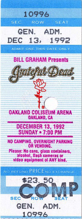 Grateful Dead Oakland Alameda County Coliseum, Oakland, CA on 12/13/92 Complete Show