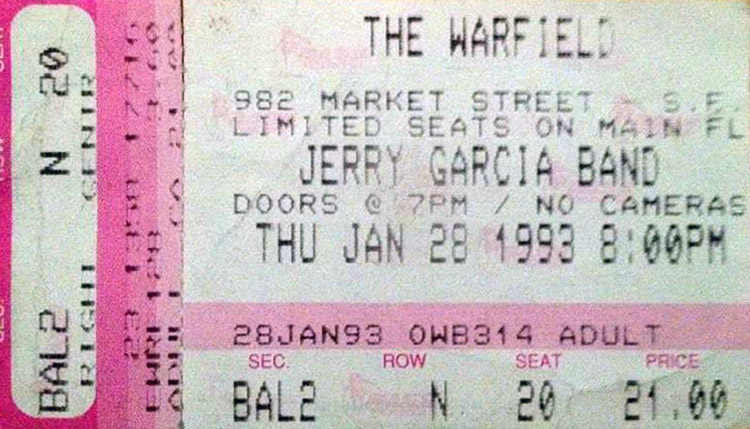 JERRY GARCIA BAND 1-28-1993 WARFIELD THEATER SAN FRANCISCO CA