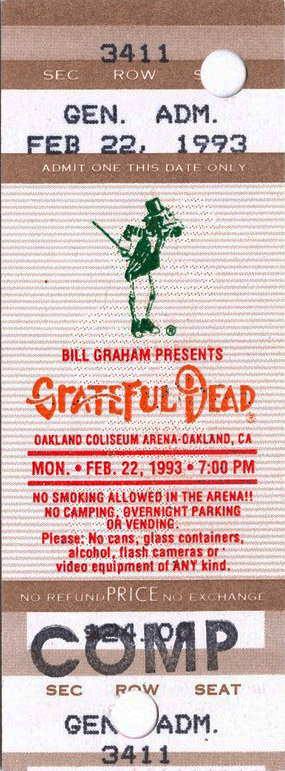Grateful Dead Oakland Alameda Coliseum, Oakland, CA on 02/22/93 2nd Set Only