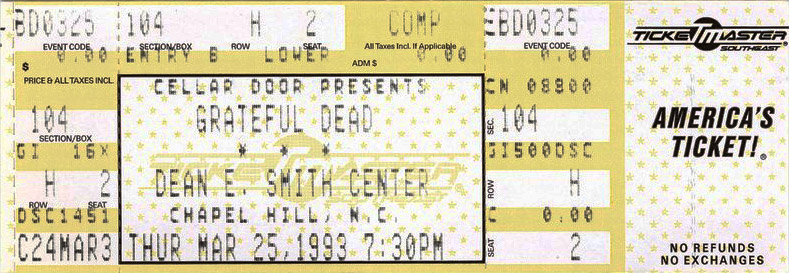 Grateful Dead 1993 3-25 Dean Smith Center, Chapel Hill, NC
