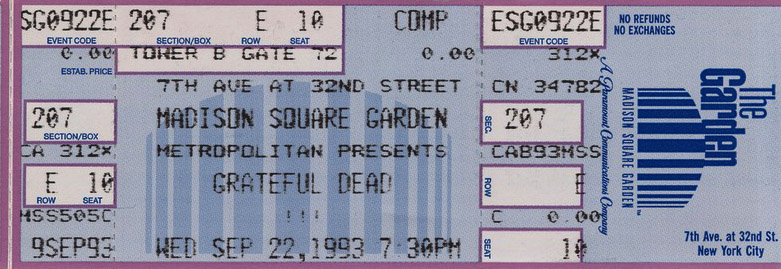 Grateful Dead Madison Square Garden, New York City, NY 9/22/93 Complete Show