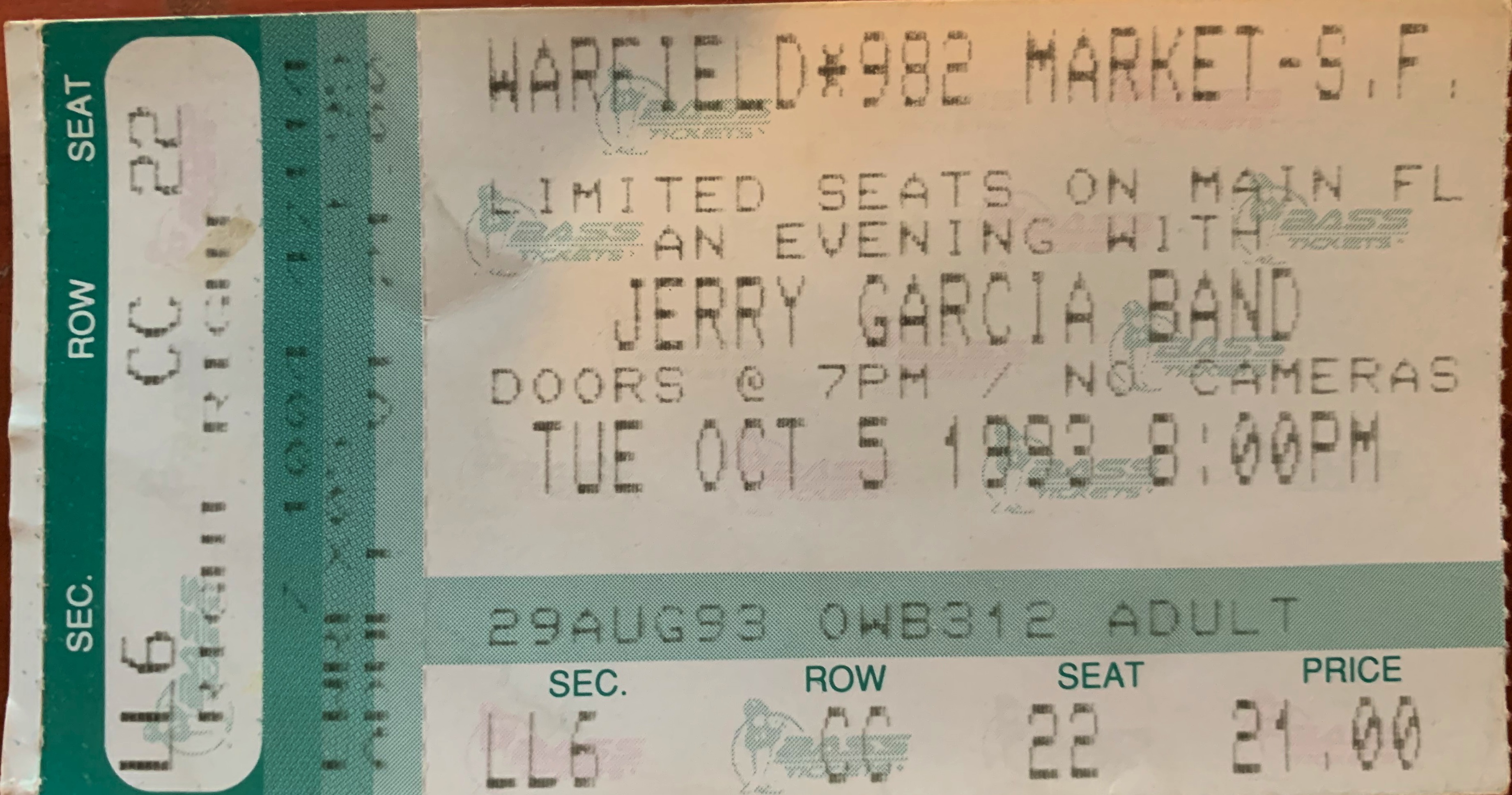JERRY GARCIA BAND 10-5-1993 WARFIELD THEATER SAN FRANCISCO CA