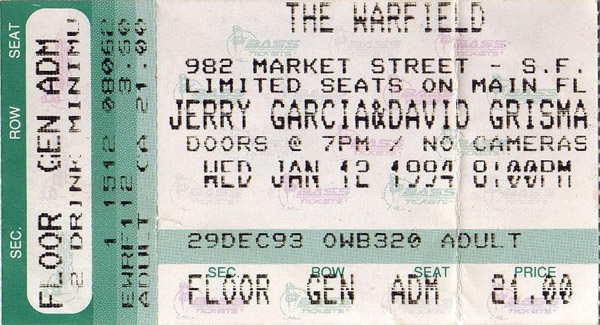 Sue: the two-night guarantee was $47,000, so $1,500 less per night than when JGB played the Warfield in October '93.