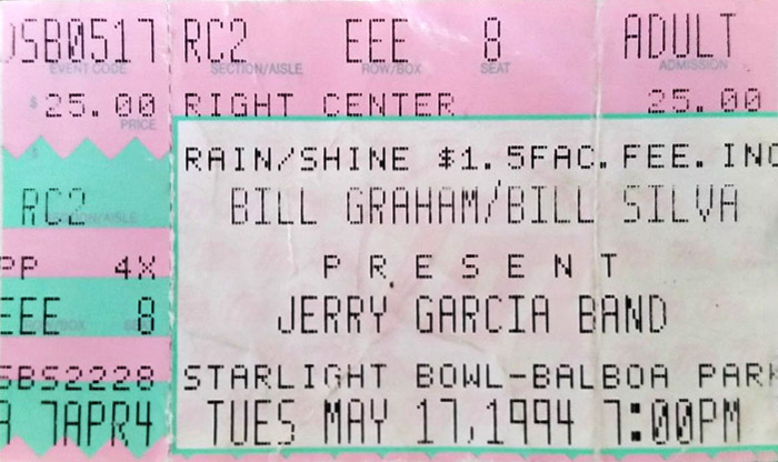 JERRY GARCIA BAND 5-17-1994 STARLIGHT BOWL BALBOA PARK SAN DIEGO CA