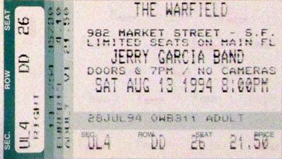 JERRY GARCIA BAND 8-13-1994 WARFIELD THEATER SAN FRANCISCO CA