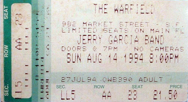 JERRY GARCIA BAND 8-14-1994 WARFIELD THEATER SAN FRANCISCO CA