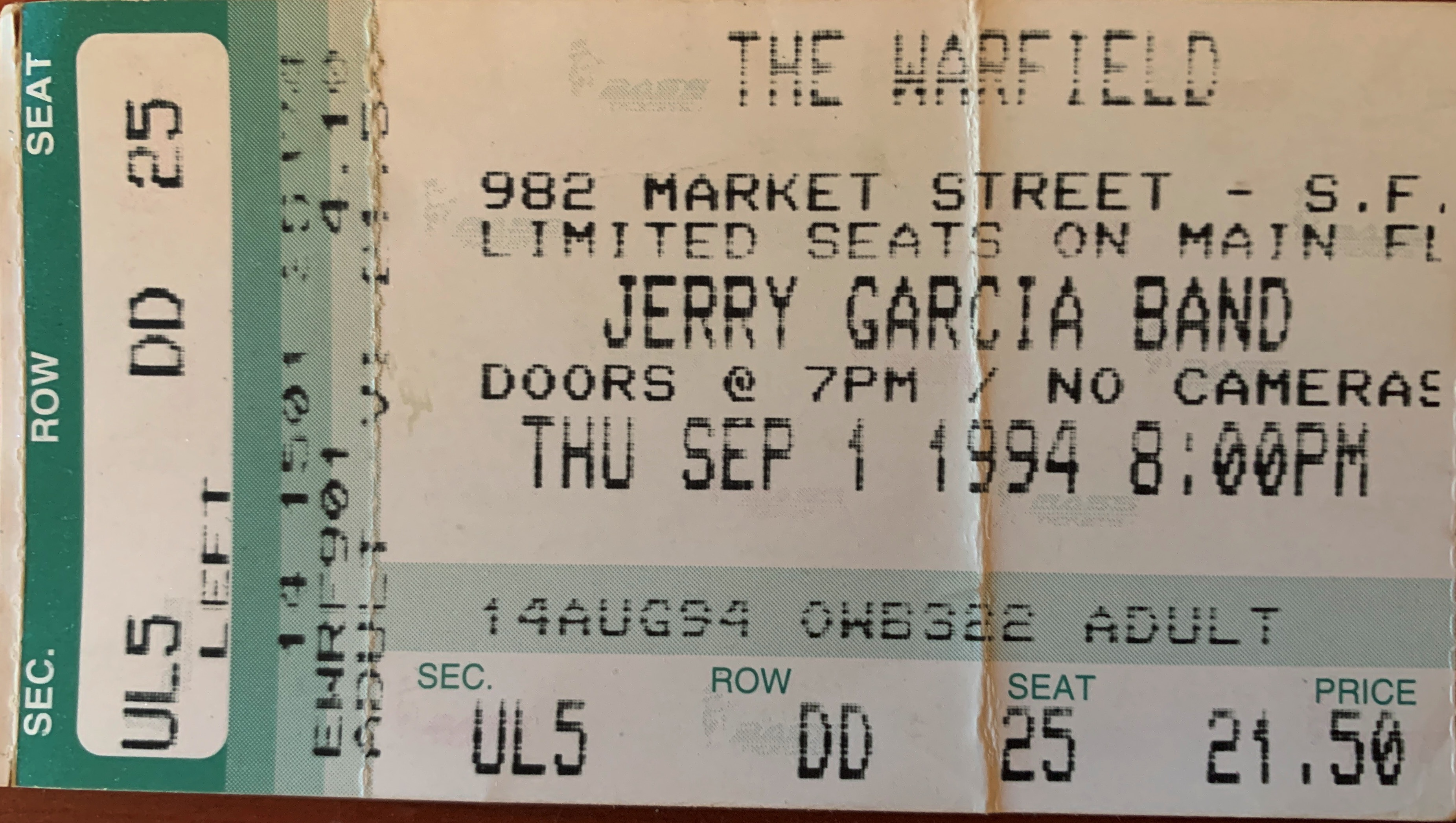 JERRY GARCIA BAND 9-1-1994 WARFIELD THEATER SAN FRANCISCO CA