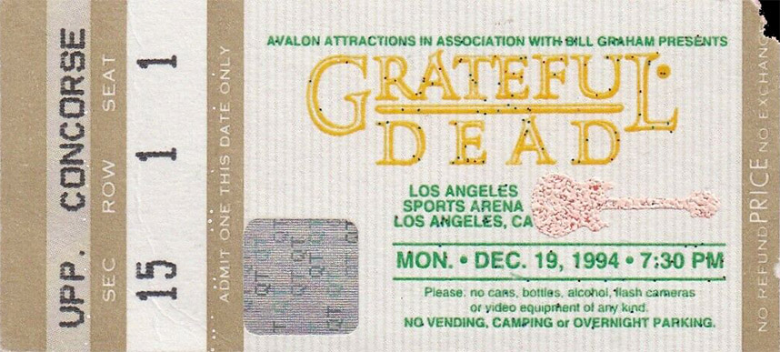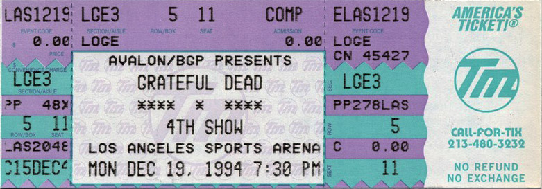 Grateful Dead Los Angeles Sports Arena, Los Angeles, CA on 12/19/94 Complete Show