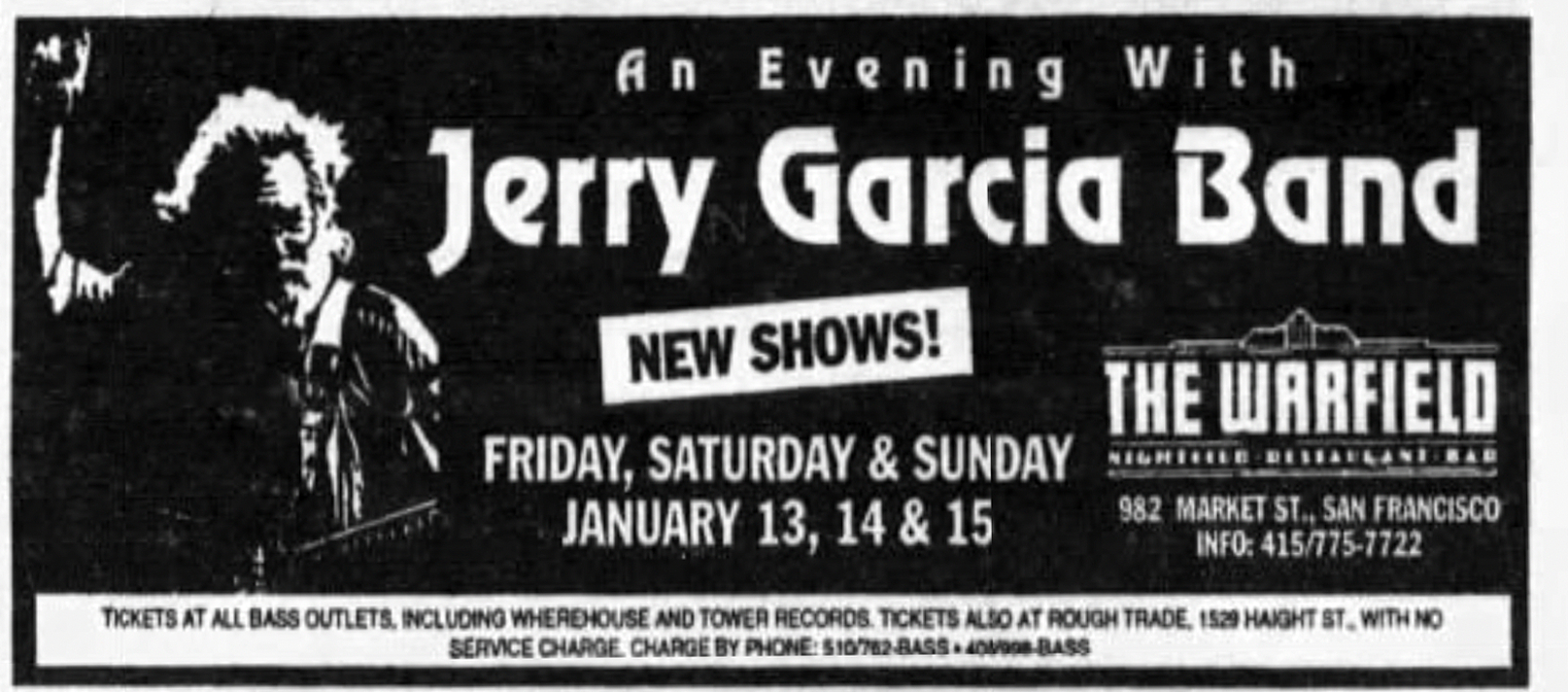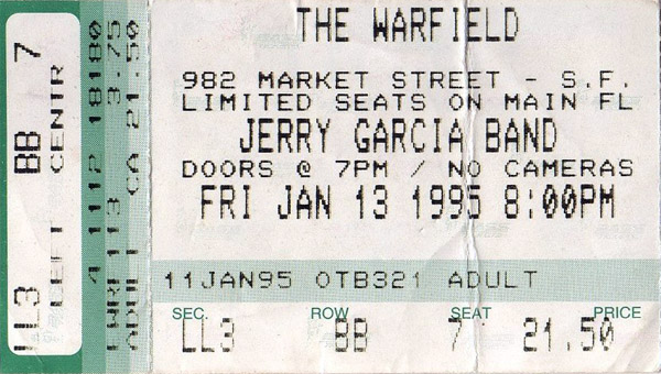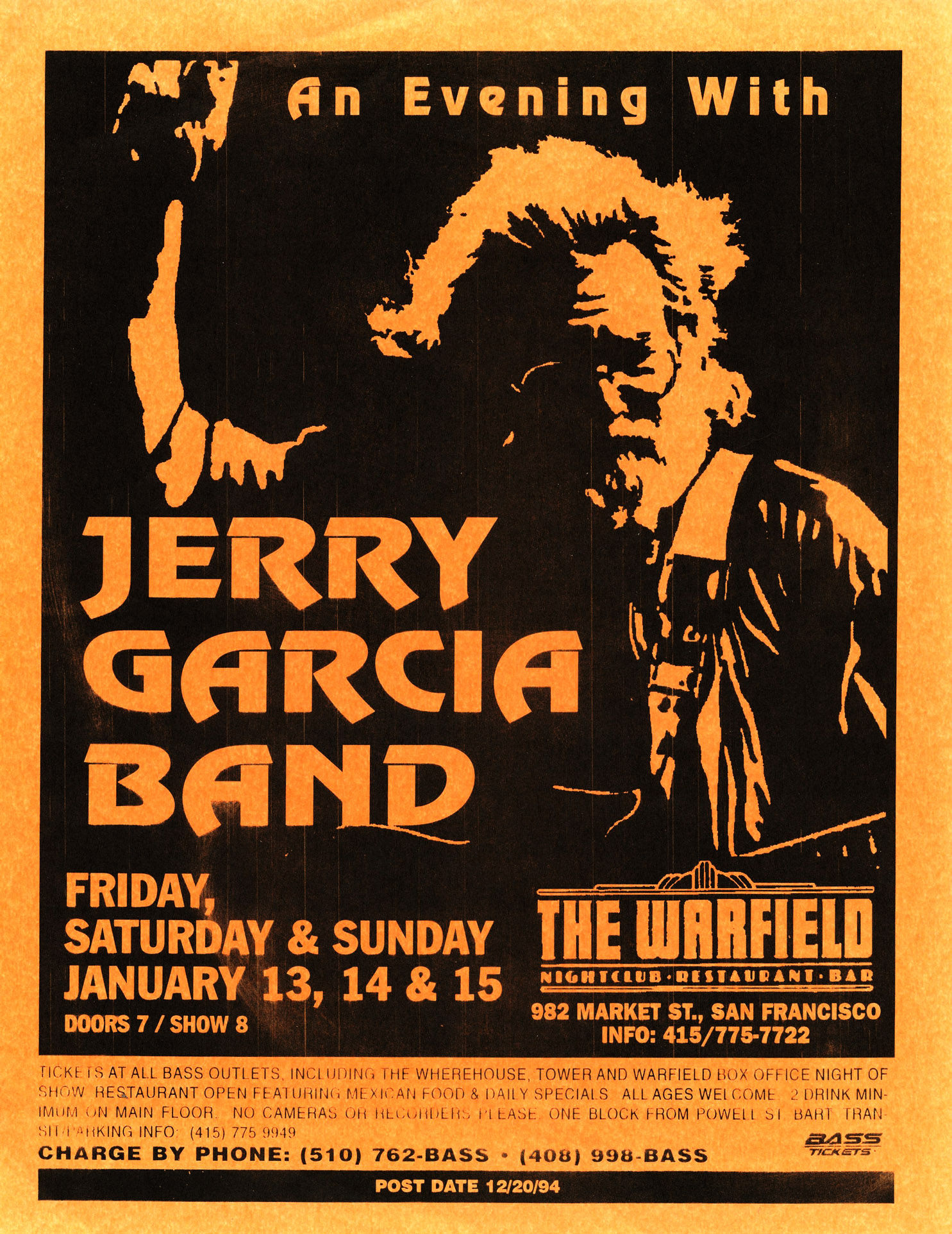 JERRY GARCIA BAND 1-13-1995 WARFIELD THEATER SAN FRANCISCO CA