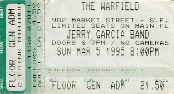 JERRY GARCIA BAND 3-5-1995 WARFIELD THEATER SAN FRANCISCO CA