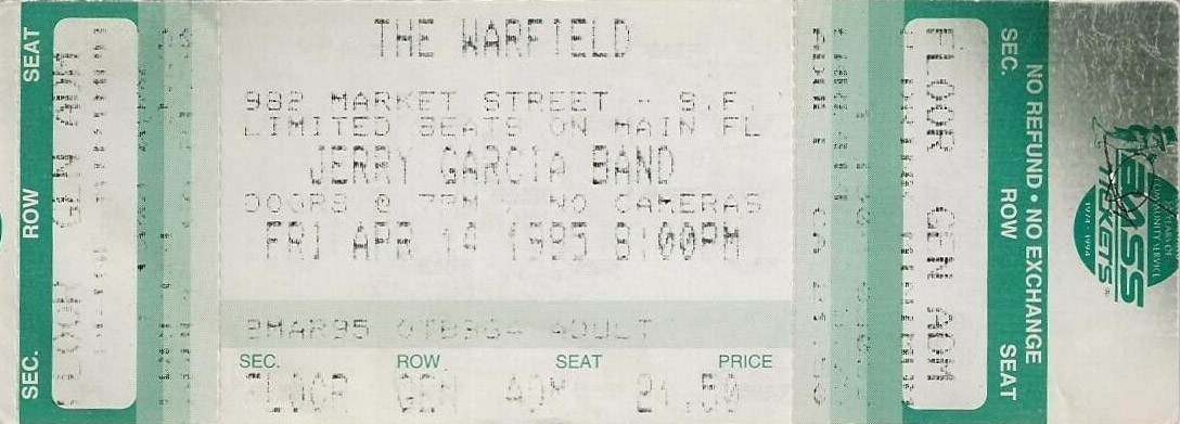 JERRY GARCIA BAND 4-14-1995 WARFIELD THEATER SAN FRANCISCO CA