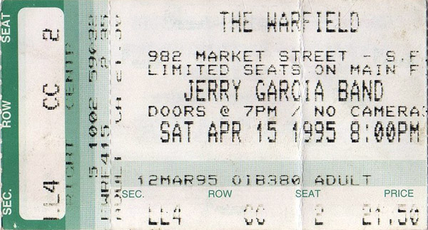 JERRY GARCIA BAND 4-15-1995 WARFIELD THEATER SAN FRANCISCO CA